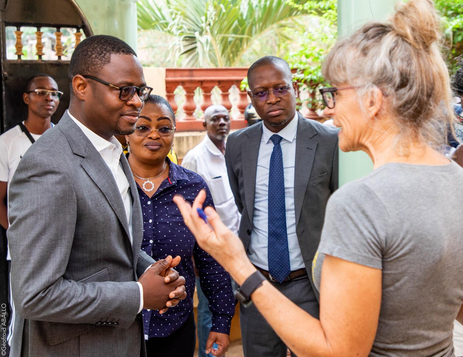 À sa descente, le Ministre des Sports a eu droit à une visite guidée suivie d'entretien avec Madame Kimberly COATS, présidente de l'ONG Team Africa Rising. Elle a présenté le Zwift qui est un programme d'entraînement physique en ligne pour le cyclisme et la course à pied ; un programme qui permet aux utilisateurs d'interagir, de s'entraîner et de concourir.