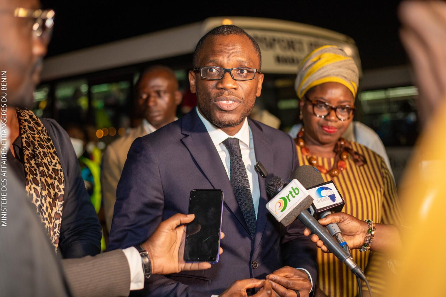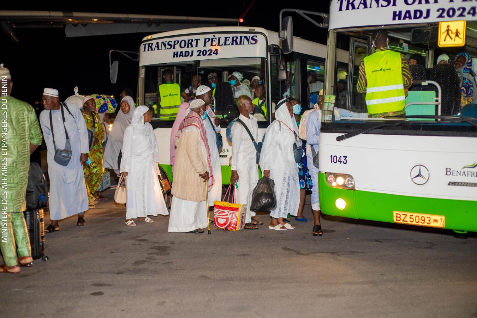 Les derniers pèlerins béninois, encore à la Mecque, ont regagné Cotonou le lundi 1er juillet 2024. Arrivés dans la soirée, ils ont été accueillis sur le tarmac de l'Aéroport international Cardinal Bernardin GANTIN par le Ministre des Affaires étrangères, Monsieur Olushegun Adjadi BAKARI. Il avait à ses côtés, la Directrice Générale de l'Agence pour la Gestion de la Logistique des Officiels (AGLO), Madame Ghislaine MENSAH et le Directeur Général de l’Agence Nationale de l’Aviation Civile (ANAC), Monsieur Karl LEGBA.