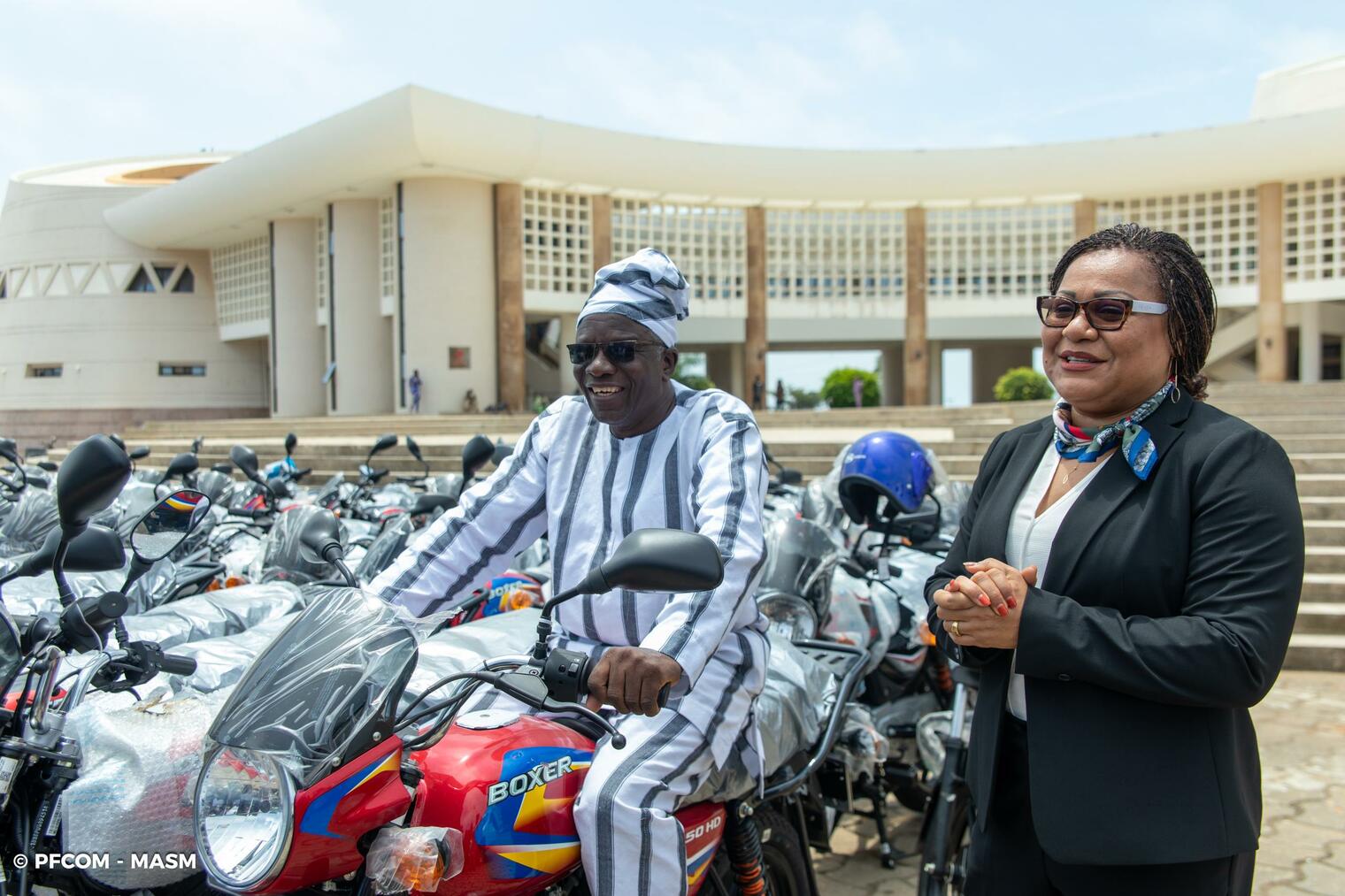 Pour sa part, le Projet d’Appui à l’Égalité de Genre (PAEG) a acquis deux (02) véhicules 4x4 et 82 motos, en complément au matériel informatique déjà remis en début d’année, le tout pour un montant global de plus de cent quatre-vingt-dix-neuf millions huit cent mille (199.800.000) francs CFA pour le compte du MASM.