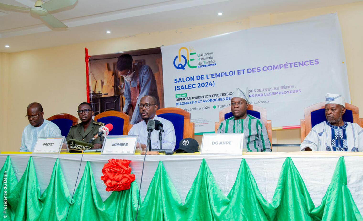 En marge de la Quinzaine Nationale de l'Emploi, le stade municipal de Lokossa a accueilli le lancement de la 6ème édition du Salon de l'Emploi et des Compétences (SALEC), le vendredi 13 décembre 2024. Placé sous le thème : « Difficile insertion professionnelle des jeunes au Bénin : Diagnostic et approches de solutions par les employeurs », cet évènement majeur a réuni de nombreuses personnalités politico-administratives telles que le Maire de Lokossa, le Ministre des Petites et Moyennes Entreprises et de la Promotion de l'Emploi, Modeste Tihounté KÉRÉKOU, le Directeur Général de l'Agence Nationale pour l'Emploi, Urbain AMÉGBÉDJI, l'Honorable Dakpè SOSSOU ainsi que les membres de la Conférence Administrative Départementale du Mono.