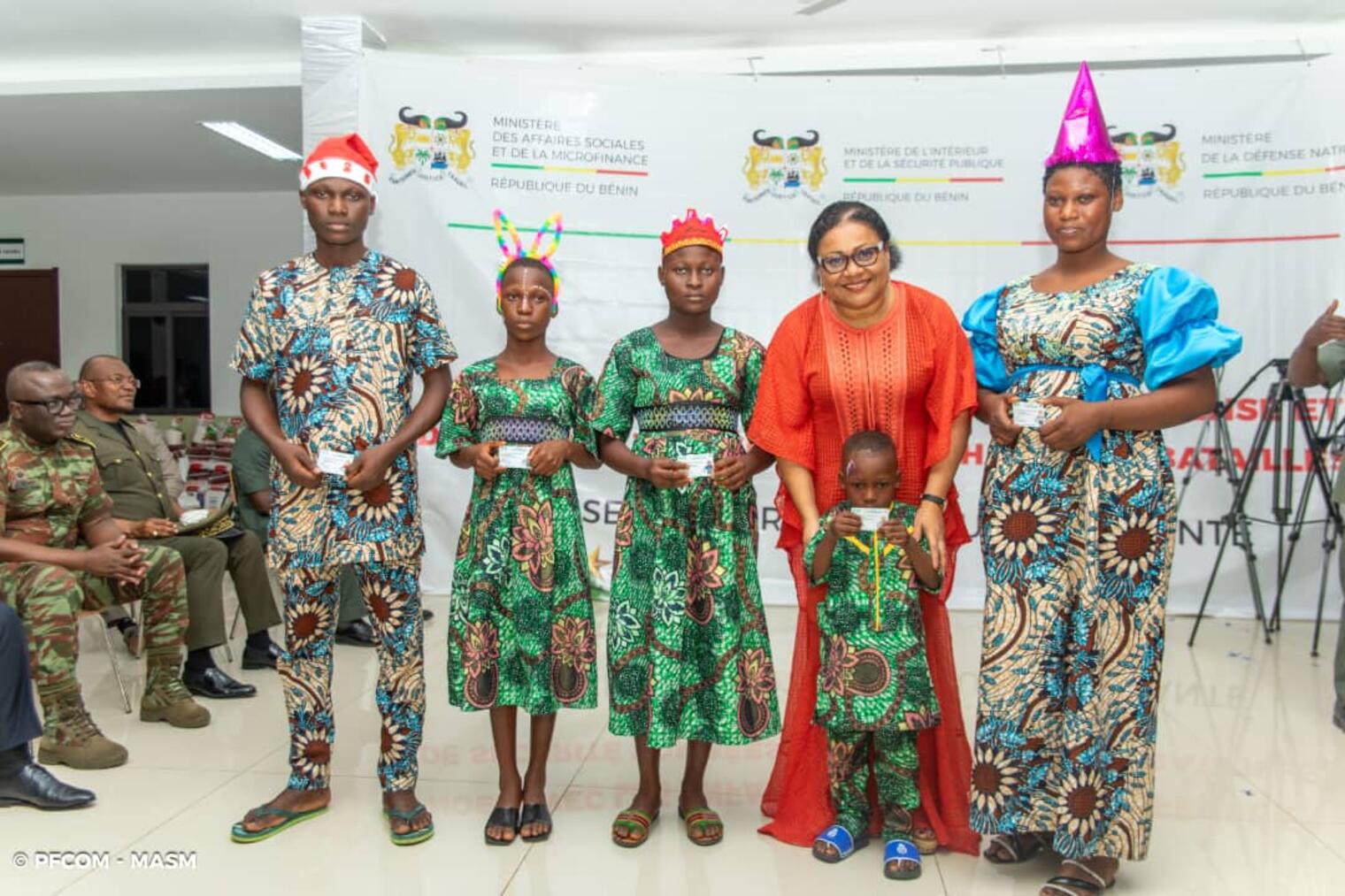 Une étape importante de cette célébration, a été la remise à chaque enfant, d’une carte d’assurance santé leur donnant droit à des soins de santé gratuits, avec une prise en charge totale, jusqu’à l’âge de 21 ans. C’est une action spécifique du Ministère de la Défense nationale, en respect aux engagements de l’État. Les trois Ministres présents à la cérémonie, ont pris la parole pour encourager les enfants et les rassurer que la Nation béninoise est avec eux.