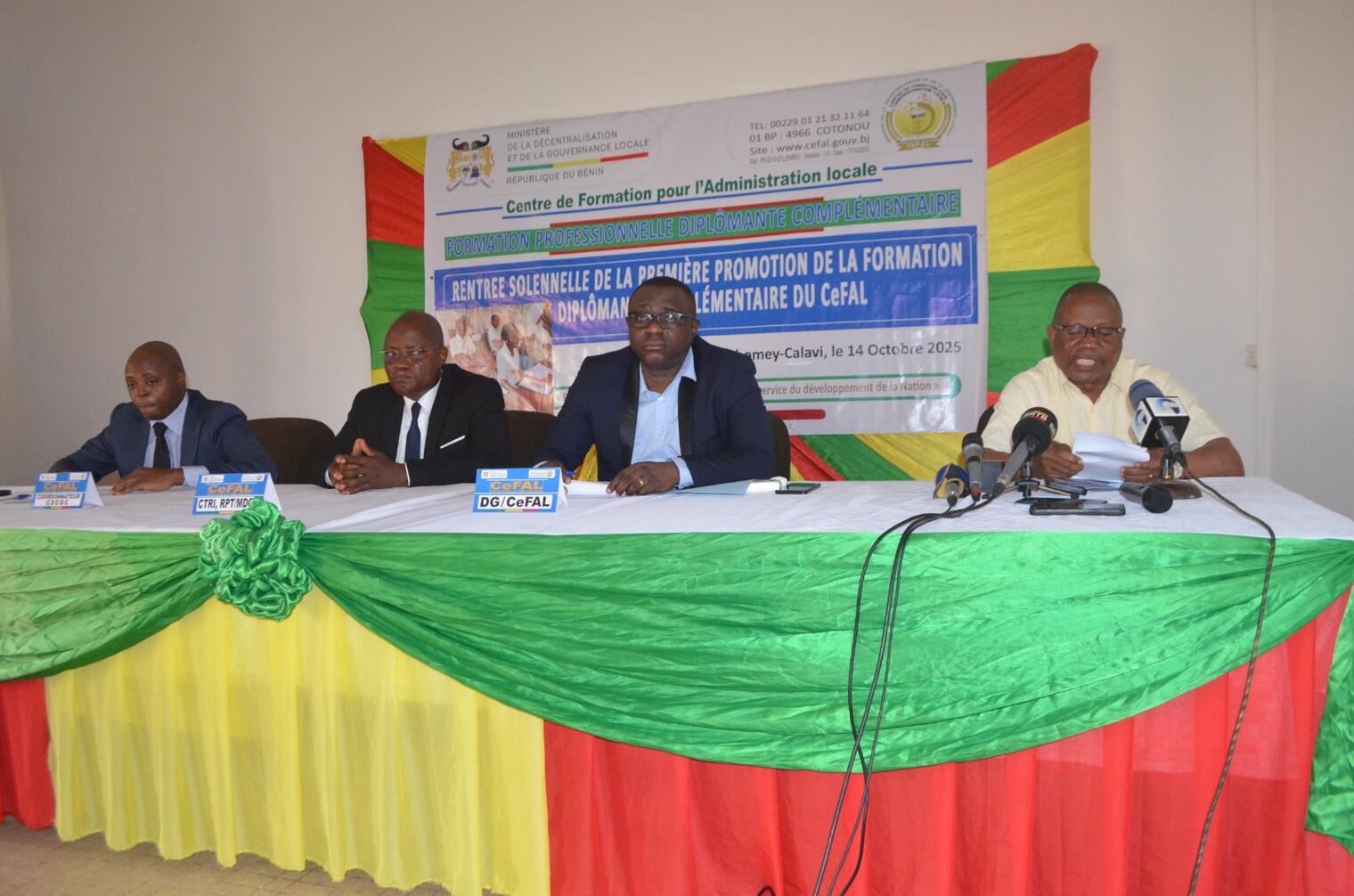 Le Centre de Formation pour l’Administration Locale (CeFAL) a abrité, le lundi 14 octobre 2025 à Abomey-Calavi, la cérémonie officielle de la rentrée solennelle des apprenants de la première promotion de la formation diplômante complémentaire, cycle B. Placée sous la présidence du Ministre de la Décentralisation et de la Gouvernance Locale, cette cérémonie marque une étape importante dans la mise en œuvre de la politique nationale de renforcement des capacités des acteurs de la décentralisation, conformément à la vision du Gouvernement pour une gouvernance locale plus performante et responsable.