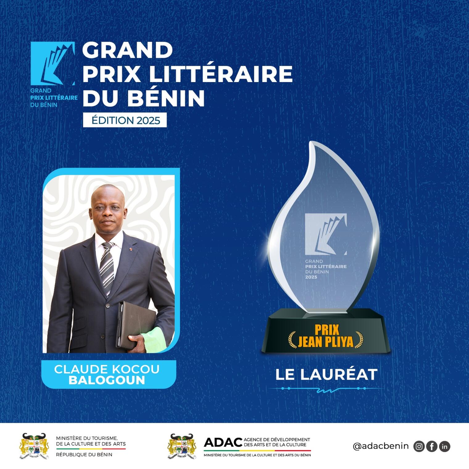 À l’issue de la délibération du Jury de sa catégorie, Monsieur Kokou Claude BALOGOUN a été couronné Grand Prix Littéraire du Bénin 2025, recevant un trophée et un chèque d’une valeur de 5 millions de francs CFA.