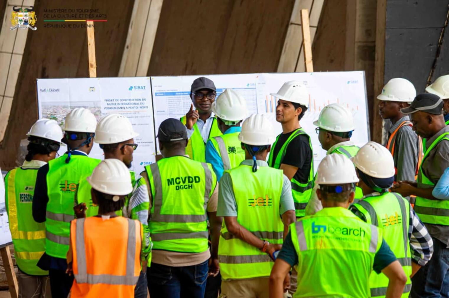 Sur place, une brève séance de travail a été tenue avec les entreprises en charge du chantier. Les échanges ont porté sur le taux d’exécution physique, les points d’attention relevés, et quelques questions d'ordre technique nécessitant un suivi particulier. À la suite de ces échanges, la délégation ministérielle a parcouru l’ensemble des compartiments du projet. De la salle d’accueil à l’auditorium en passant par le bâtiment afro-brésilien, les édifices en forme de calebasse, ainsi que les ateliers prévus pour les besoins muséographiques.