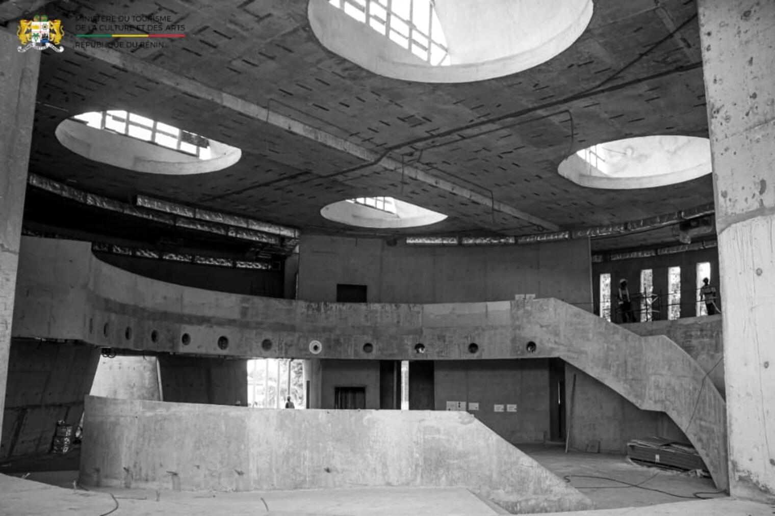 Accompagné du Chargé de Mission du Chef de l’État, Monsieur Alain GODONOU, et de quelques cadres techniques du ministère, le Ministre est allé constater l’état d’avancement des travaux sur ce vaste complexe culturel implanté sur une superficie d’environ un hectare et demi.