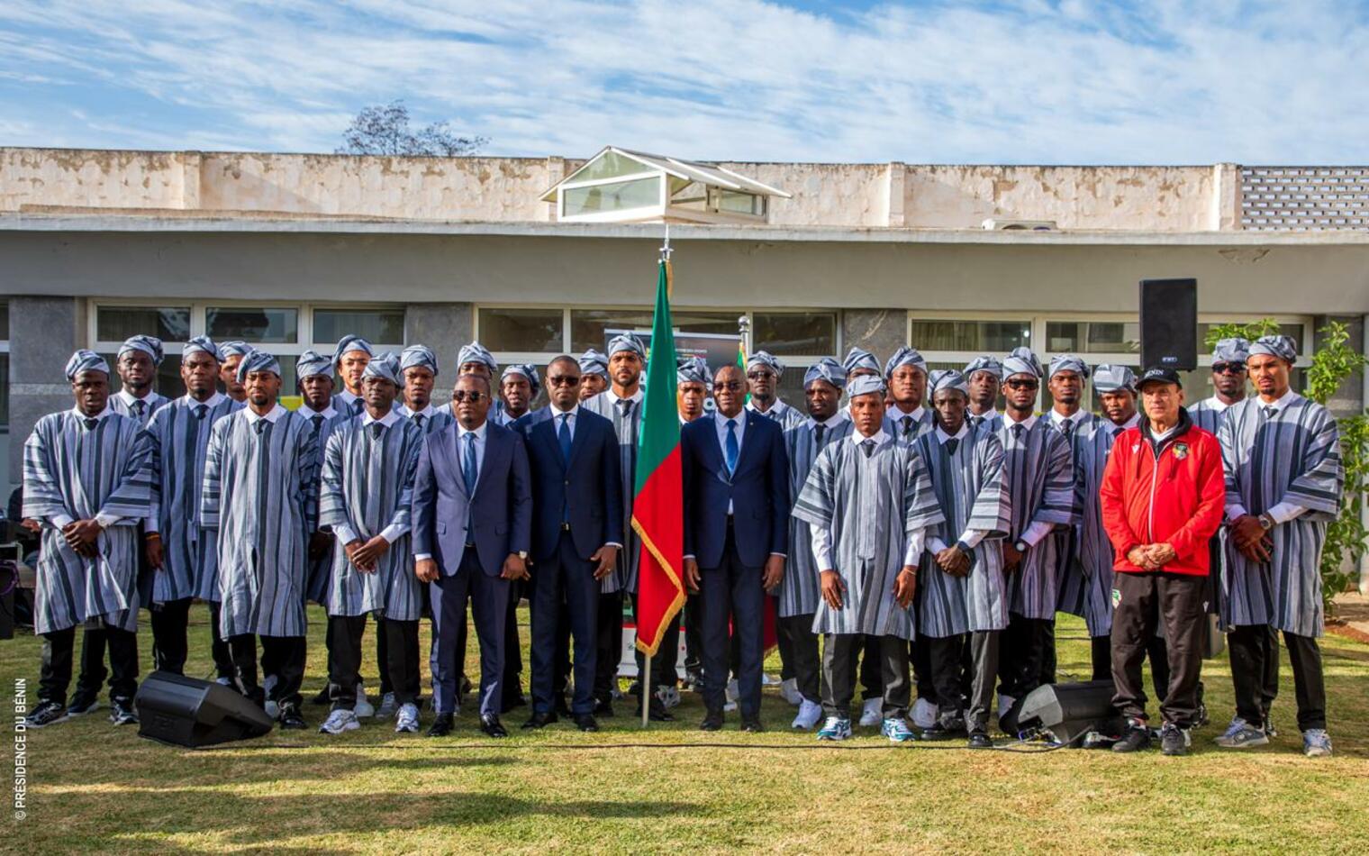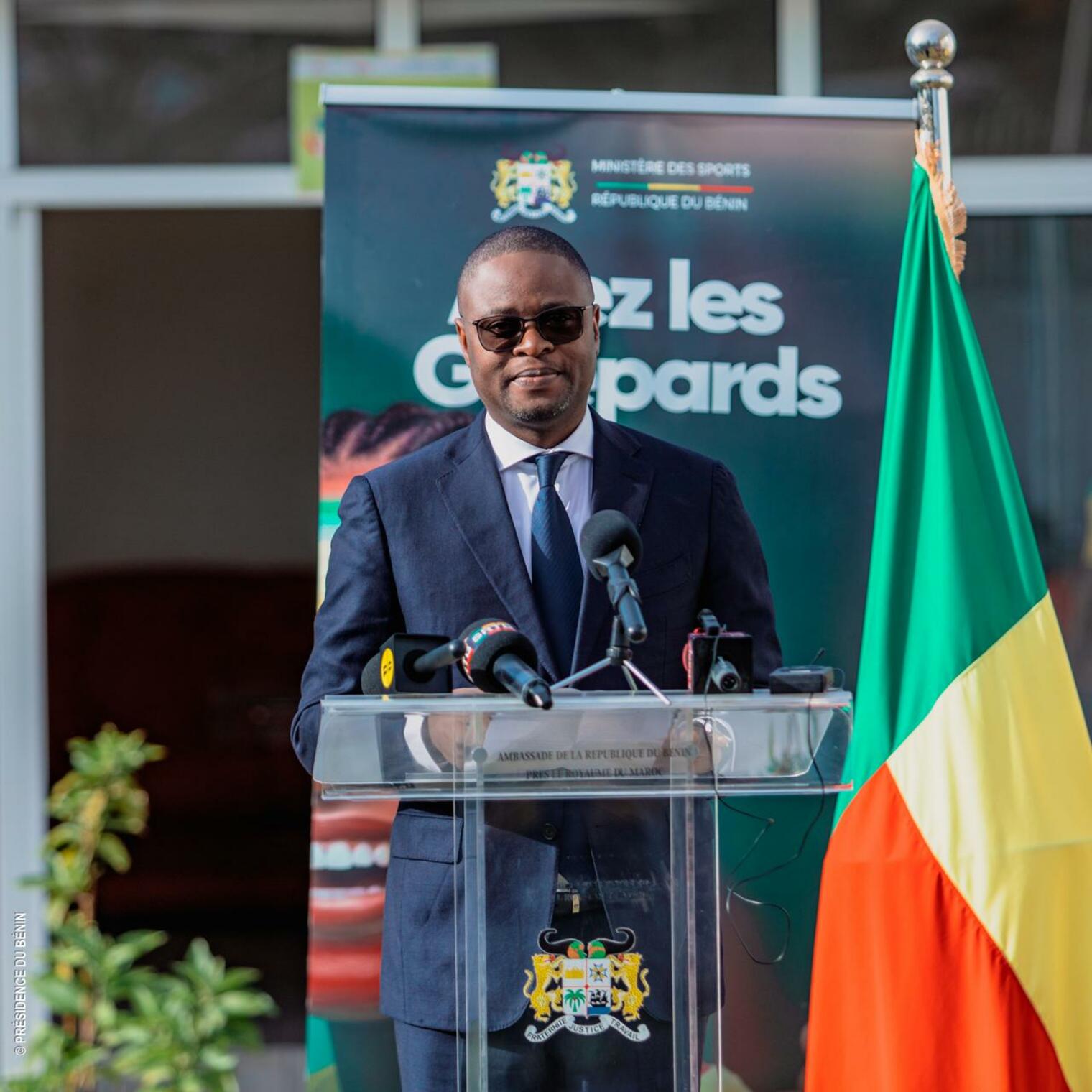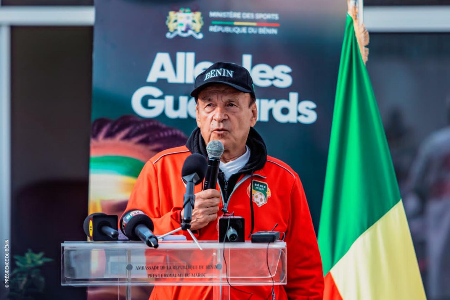 Il a poursuivi en ces termes : « Nous comptons sur votre patriotisme, car porter ce maillot, c’est défendre des valeurs, une histoire et un avenir. Au nom du Gouvernement du Président Patrice TALON et du peuple béninois, je vous souhaite un parcours à la hauteur de vos ambitions et de celles de notre Nation. Que ce drapeau vous inspire, vous protège et vous élève ».