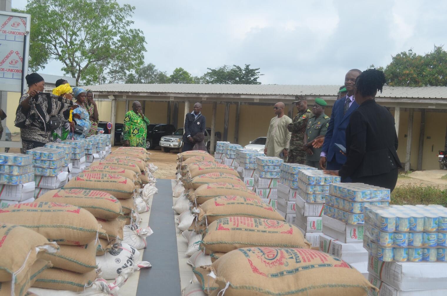 À travers son Conseiller technique aux affaires sociales, Monsieur Franck KOMAHOUÉ, le Ministère a lancé sa tournée annuelle de distribution de kits alimentaires. Ces dons, composés notamment de sacs de riz et de maïs, de bidons d’huile, de pâtes alimentaires et de cartons de sucre, sont destinés à soulager les familles bénéficiaires et à leur permettre de célébrer les fêtes de fin d’année dans la dignité.