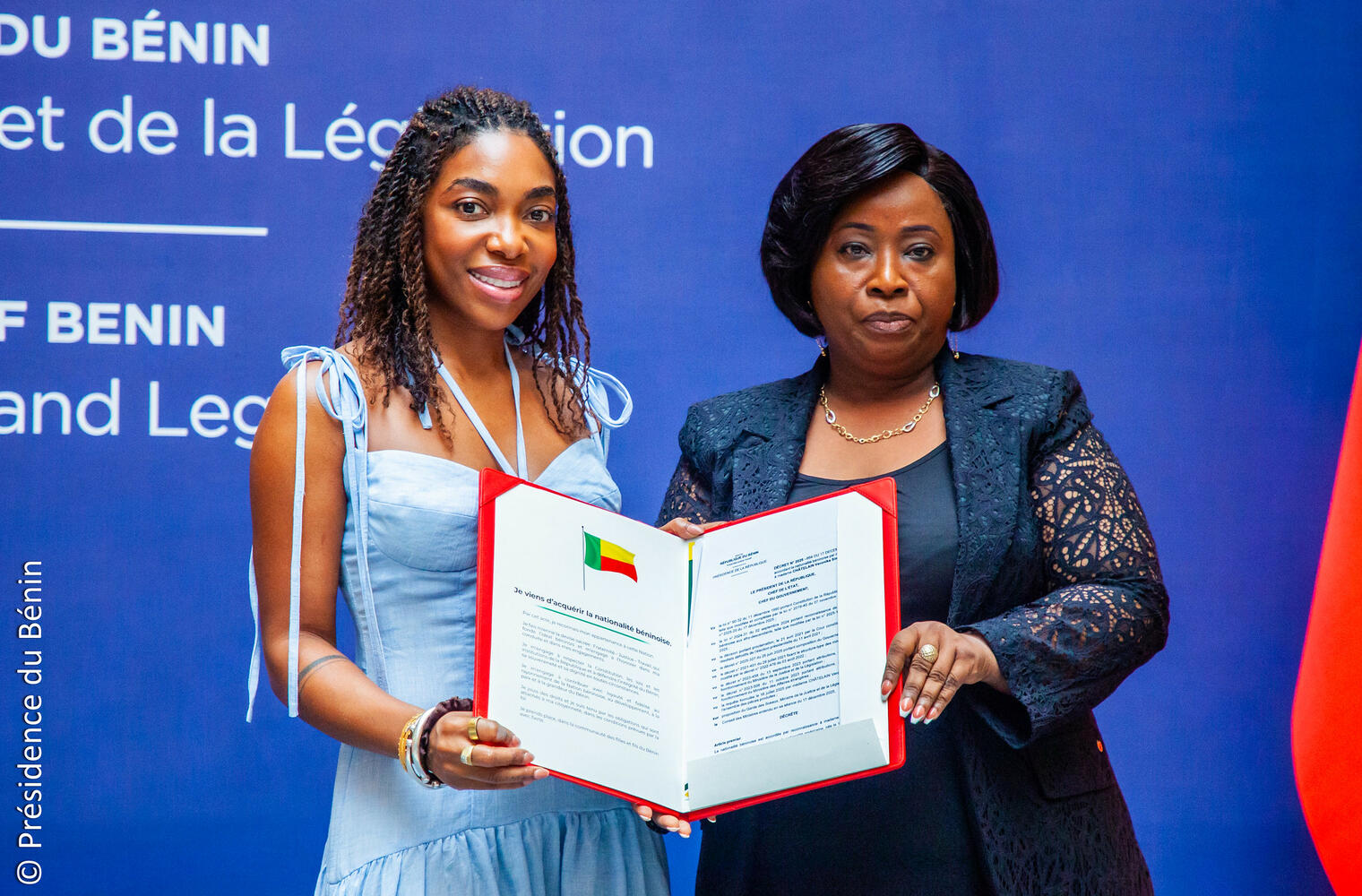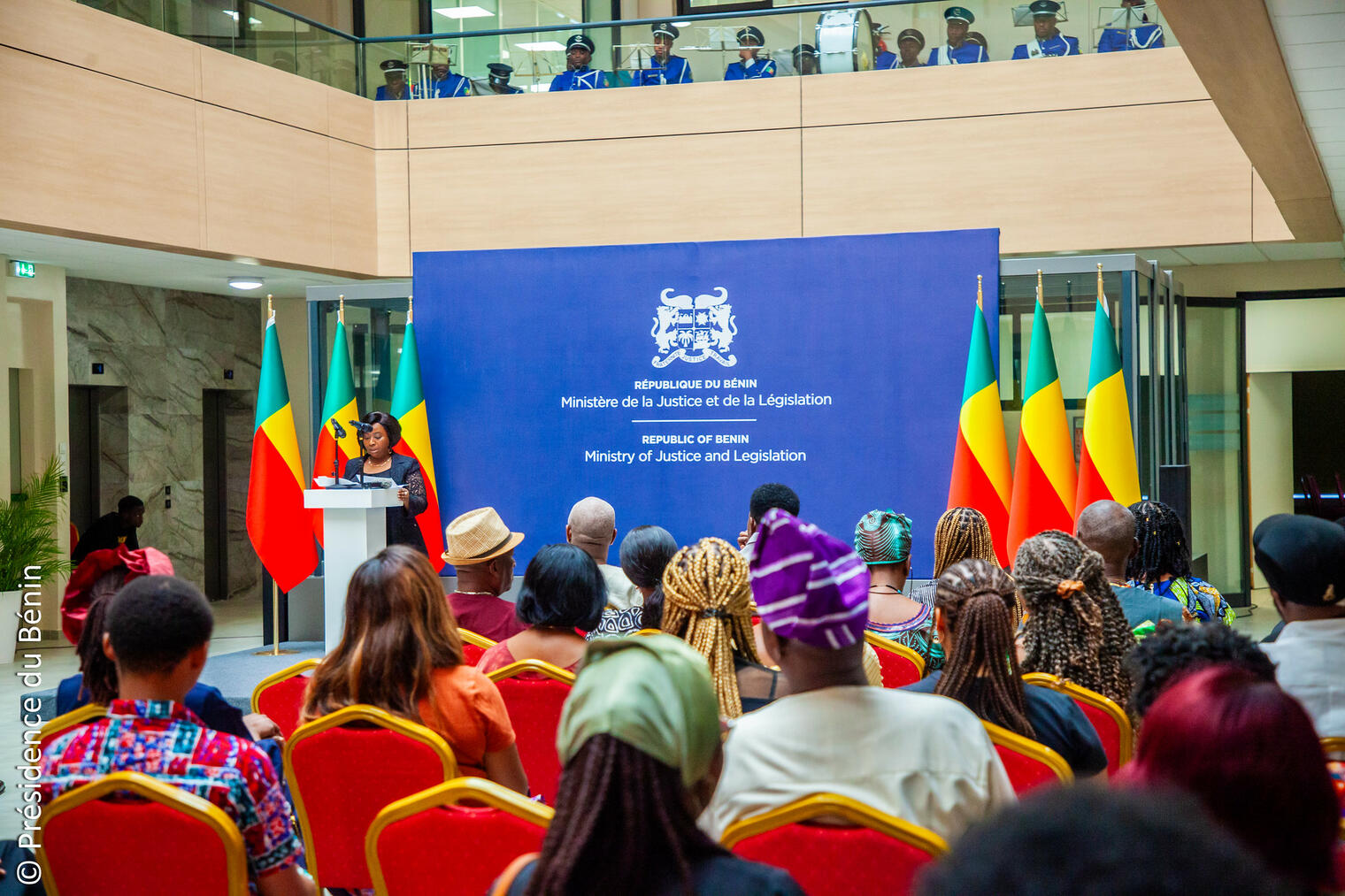 La cérémonie s’est déroulée en présence de plusieurs autorités gouvernementales, notamment le Garde des Sceaux, Ministre de la Justice et de la Législation, Monsieur Yvon DETCHENOU, le Ministre des Affaires étrangères, Monsieur Olushegun ADJADI BAKARI, ainsi que Monsieur Jacques AGUIA DAHO, Directeur de cabinet du Ministère du Tourisme, de la Culture et des Arts, représentant le Ministre. Leur présence atteste de l'importance que revêt cette démarche mémorielle et juridique pour les autorités.