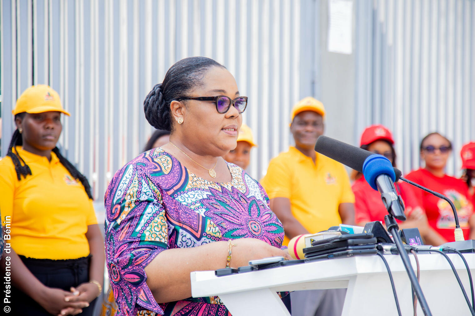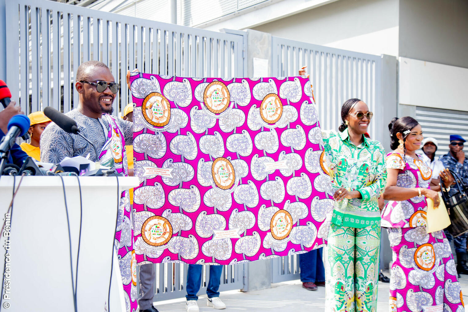 La cérémonie conduite par Madame Shadiya Alimatou ASSOUMAN, Ministre de l’Industrie et du Commerce, s’est tenue en présence de Madame Eunice LOISEL KINIFFO, Directrice générale de l’Agence nationale de gestion des marchés (ANaGeM), ainsi que de la représentante du Maire de Cotonou. Monsieur Janvier YAHOUÉDÉHOU, Ministre-Conseiller à l’Économie et aux Finances, était également présent, témoignant de l’attention particulière accordée par l’État à ce projet à fort impact économique et social.