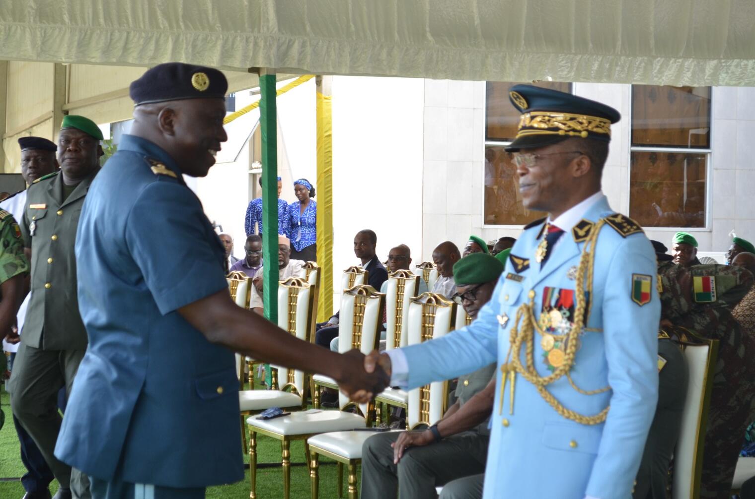 Les insignes de Général d’Armée Aérienne ont été remis au récipiendaire par le Ministre délégué auprès du Président de la République chargé de la Défense nationale, Monsieur Alain Fortunet NOUATIN. Désormais coiffé d’un képi orné de Cinq Étoiles et arborant un uniforme bleu ciel impeccable, le Général Bertin BADA a affiché une prestance empreinte de détermination. Pour le Ministre, cet instant illustre la volonté du Chef suprême des armées de bâtir des forces armées solides, disciplinées, loyales et stratégiquement aguerries.