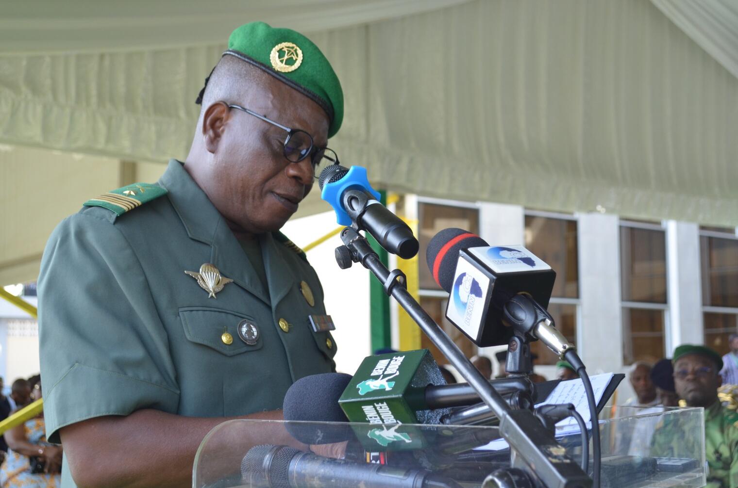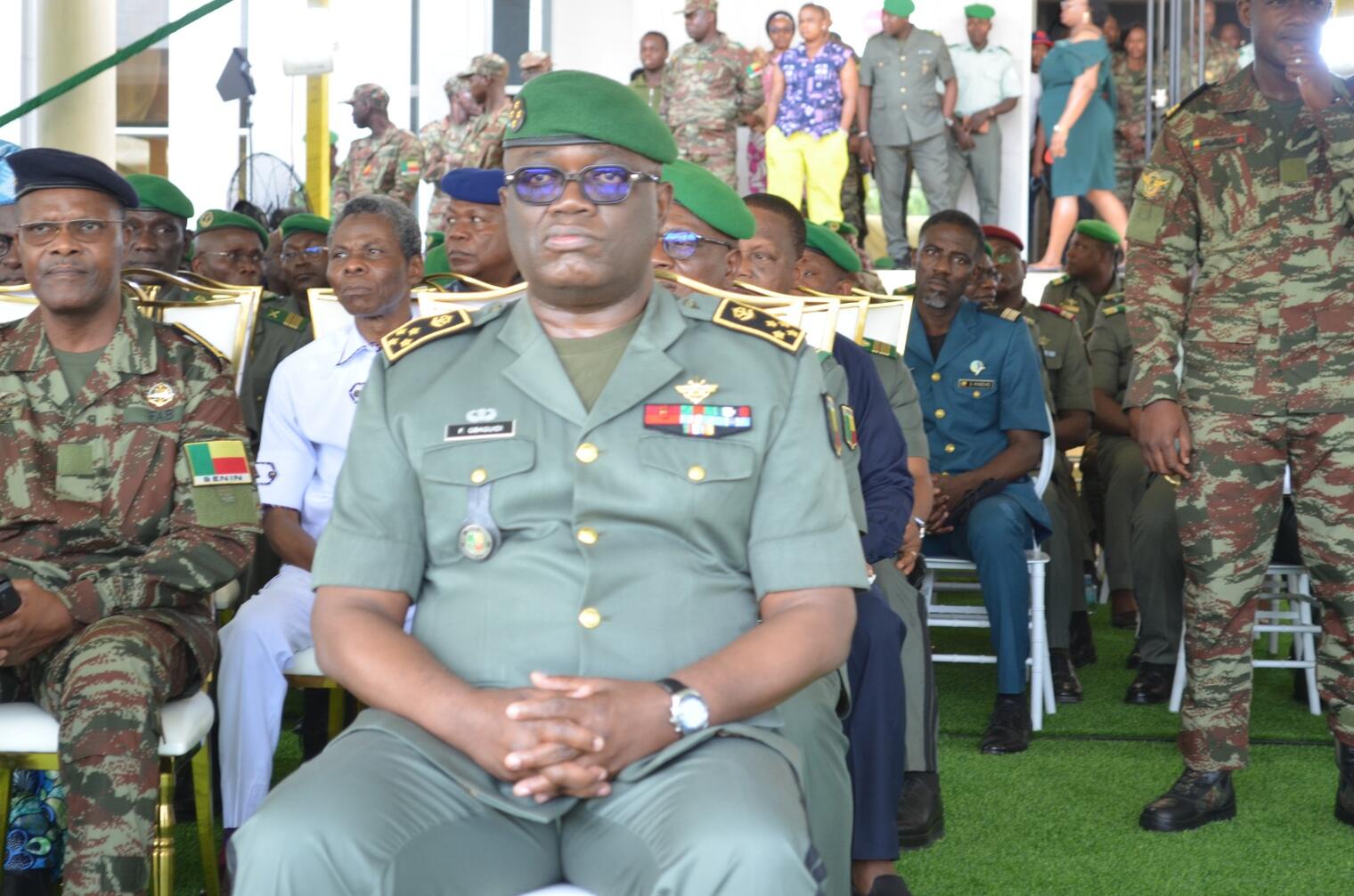 La cérémonie s’est tenue en présence du Haut Commandement Militaire, conduit par le Général de Corps d’Armée Fructueux GBAGUIDI, ainsi que des membres du gouvernement, de nombreuses personnalités, parents et amis, venus saluer la loyauté et l’engagement d’un homme au service de la Nation.