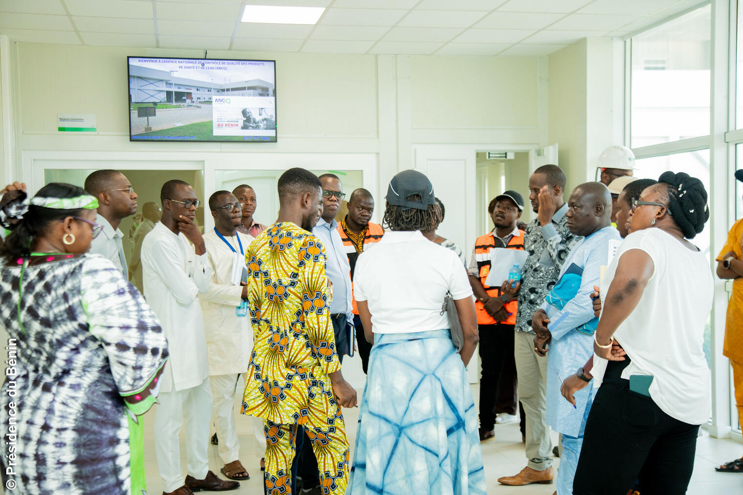En présence de Madame Noëlle SADELER, chargée de mission du Président de la République, du Coordonnateur du projet PEPRAU, Monsieur Eloi AHOUMENOU, et du Directeur Général de l'ANCQ, Dr Achille YEMOA, l'équipe de contrôle a passé au peigne fin tous les compartiments du joyau architectural qui s'impose par sa modernité, mais aussi par le rôle qu'il est appelé à jouer pour garantir la fiabilité et la précision des résultats en matière de contrôle de la qualité microbiologique et physico-chimique des produits de santé et de l'eau.