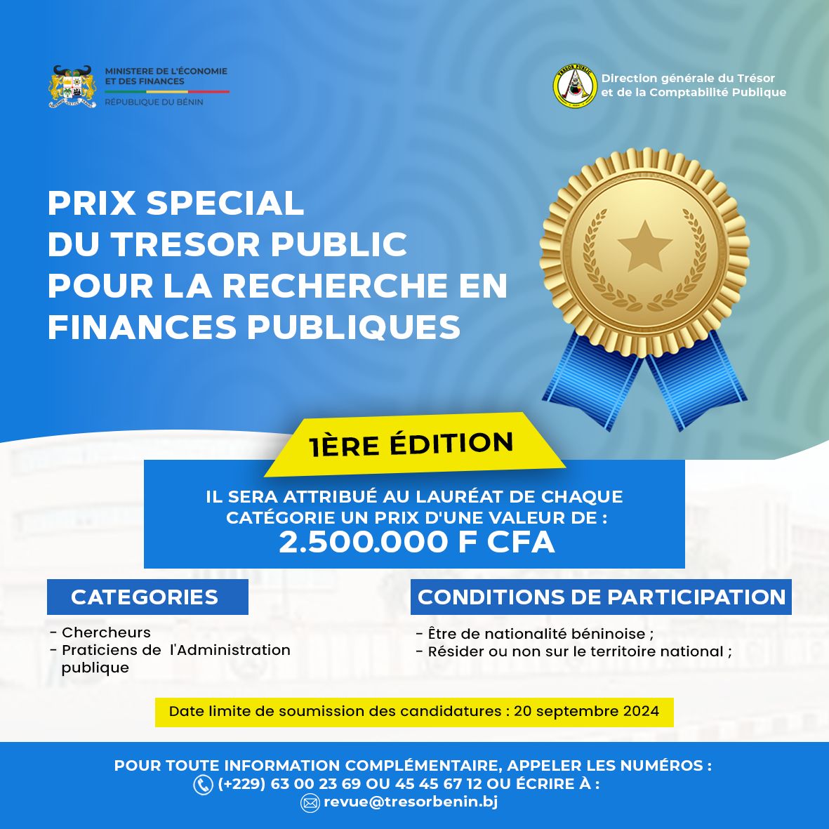 D’une valeur globale de cinq (05) millions francs CFA répartis entre deux catégories « Chercheurs » et « Praticiens », ce prix spécial récompense les travaux de recherche originaux portant sur un sujet d'ordre économique, monétaire ou financier et présentant un intérêt scientifique avéré pour le Trésor public.